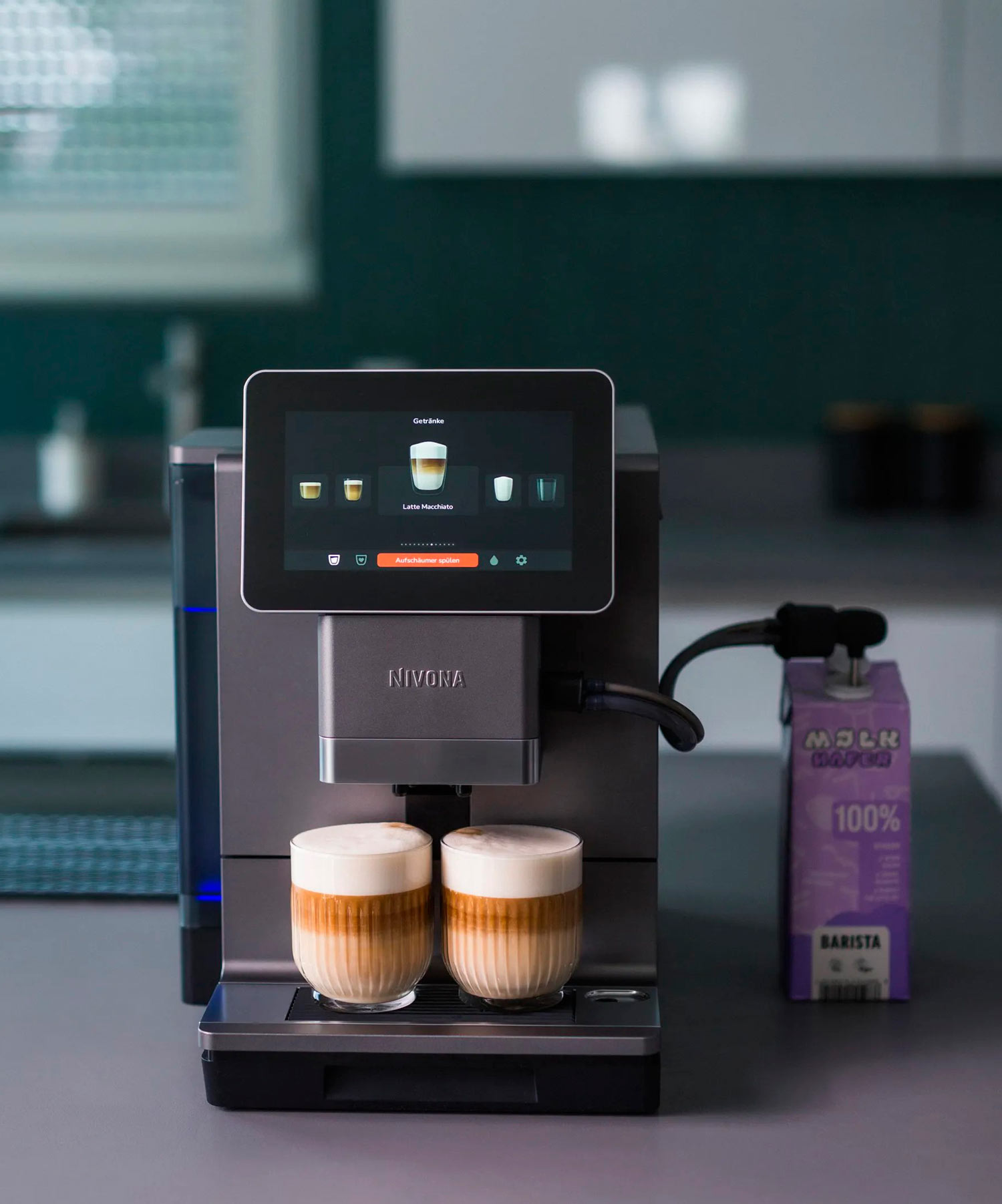 С автоматическим капучинатором Spumatore с запатентованной функцией OneTouch DUOplus, позволяющей готовить два капучино или латте макиато одновременно одним нажатием кнопки.